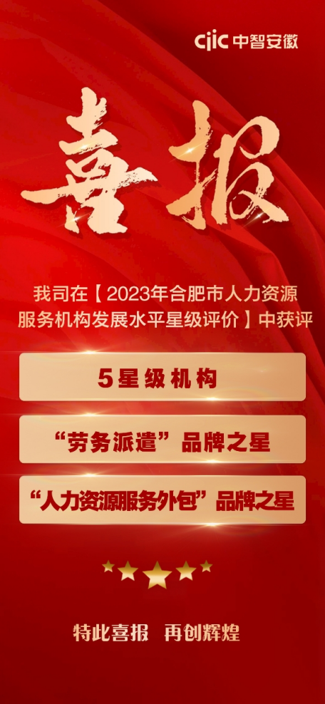 近日,合肥市人力資源和社會保障局公布了2023年度合肥市人力資源服務機構星級評定結果,中智安徽公司獲評5星級人力資源服務機構,并榮膺“勞務派遣”與“人力資源服務外包”品牌之星。此次評定對參評企業的基本實力、信用體系、管理水平、發展潛力以及社會貢獻等多個維度進行了考量,獲此殊榮是對中智安徽公司的認可和鼓勵。